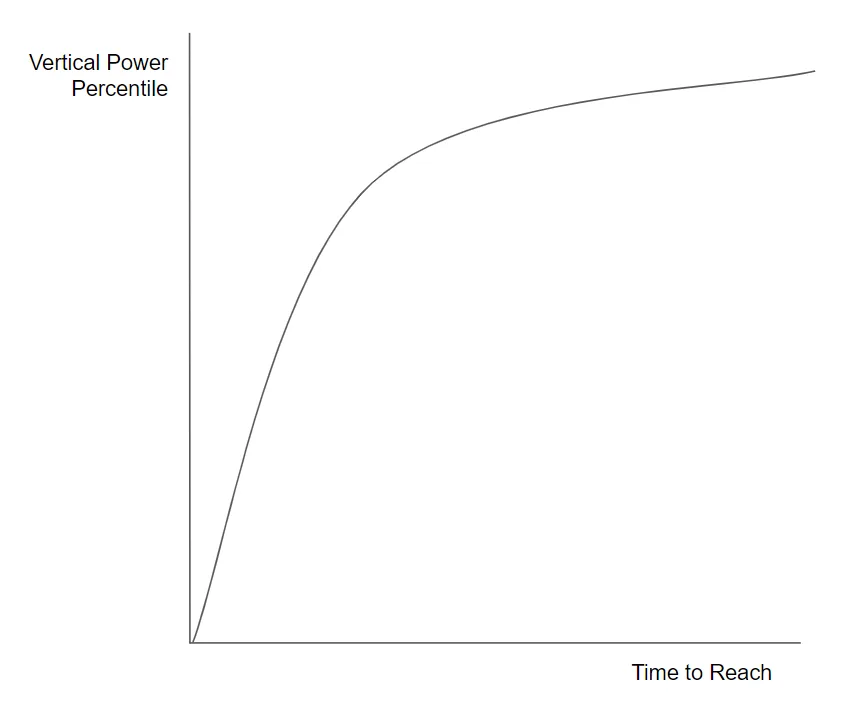 But on another, the returns to time in terms of vertical power percentile decrease (i.e., a given hour or dollar of spend buys less percentile increase as the absolute amount of time/dollar spent increases). It’s easier to go from rank 500 to 400 than rank 100 to 1.