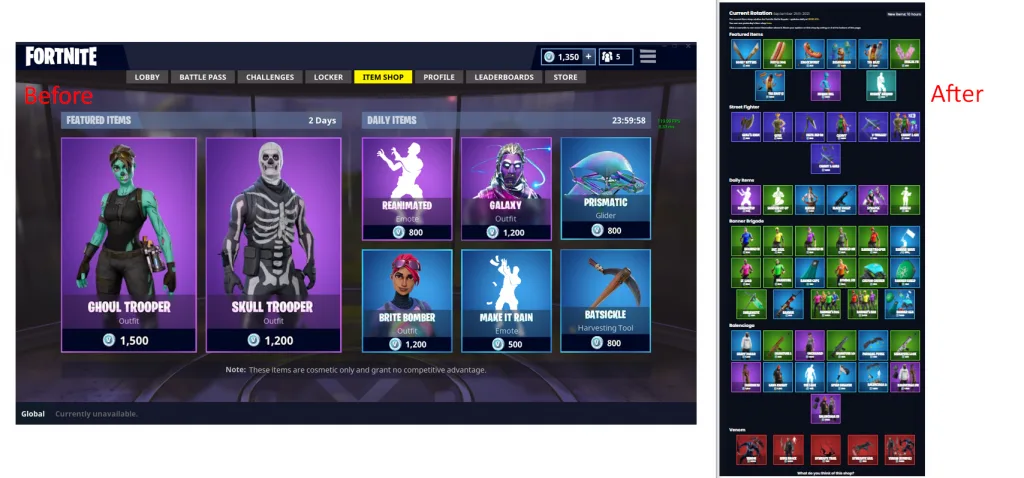 At the very least, Fornite and Call of Duty Warzone have moved to higher item carry in their rotating stores. What was once a quaint eight items has exploded to some ~50 items.