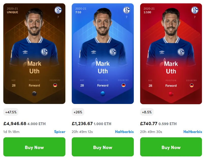 A card with a higher level has a higher multiple on points. If a high level card does well, it scores a lot of points. Just fielding a player allows it to become more powerful. And it’s all monetized via auction house prices.