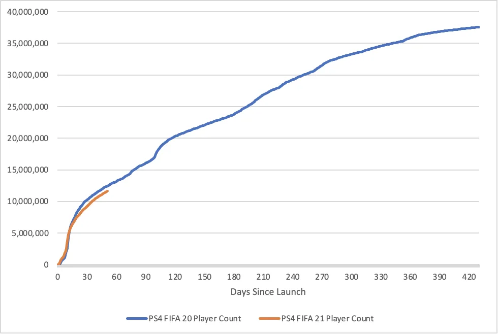FIFA PS4 Player Count by Days Since Launch