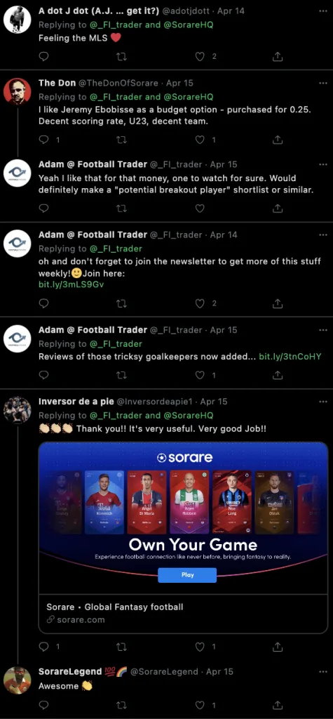 It’s really acquisition that needs the biggest boost, 26k Twitter followers won’t cut it. As a16z has pointed out, it’s up to Sorare to get distribution, before UT/Fantasy sports gets innovation. Do so likely rests on: