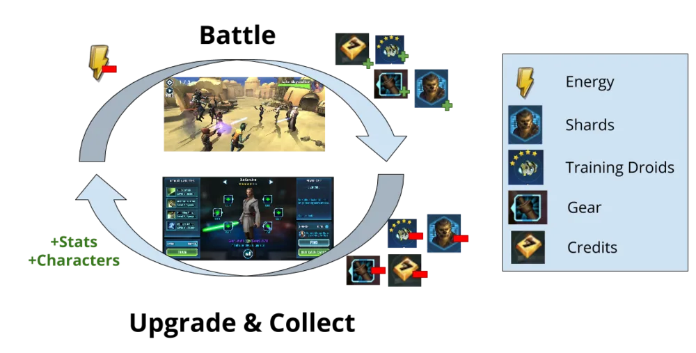 Persistence also allows for the possibility of investment. Players play matches because it earns them characters. Higher level characters mean higher win probability. More win probability means earning more high level characters. But that entire loop may not complete in a single session. Players cycle throughout the loop, picking-off where they last left (in given OVR, currency balance, etc) from session to session. The expectation of future output based on today’s inputs is the definition of investment. Players can expect a given unit of input to pay a stream of benefits over their engagement with the game.