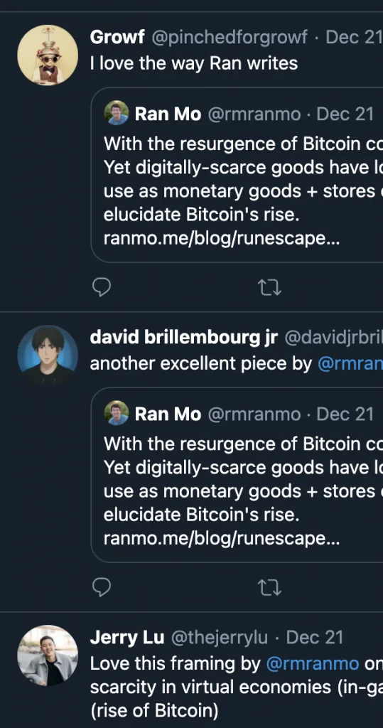 The article’s writer, Ran Mo, is a Lead Product Manager at EA according to his Linkedin while the quote Tweeter is a fellow product manager. Dive a bit deeper and the retweets are all from fellow VCs or product people (guess there’s something to this).