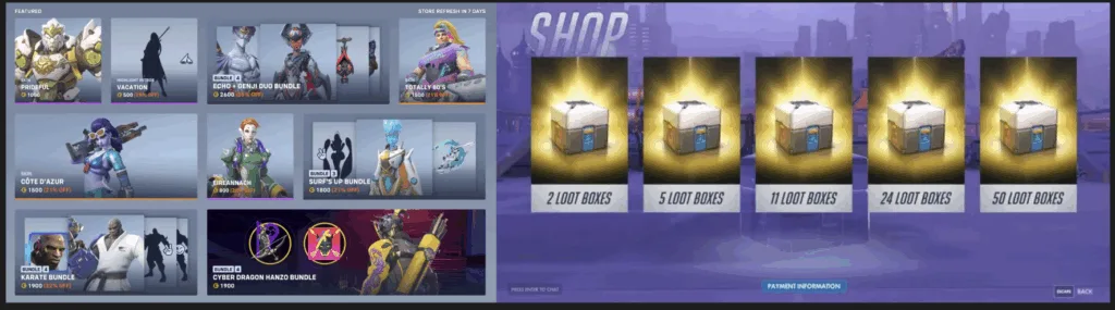 The second reason is simply the reduction in cost from a loot-box store (pun intended) versus a direct store. Selling a mystery box is operationally cheaper than running a forever‑changing shop. “Here’s a pack—take it or leave it” trumps curating endless bundles and flash sales. The contrast between Overwatch 1’s vending‑machine interface and Overwatch 2’s department store tells the story of one click versus cognitive overload. Players face a single decision: yes or no, while developers save on store logic.