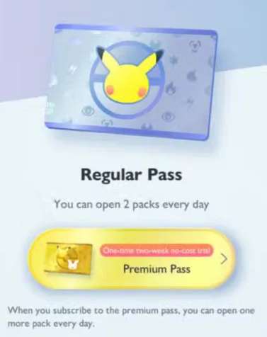Another change has been to move the pass to a subscription: an automatic recurring charge. Fortnite implemented this in 2020 with Fortnite Crew, and while the program hasn’t died, it hasn’t precisely thrived either. Pokémon TCG Pocket is a recent attempt at this, offering an additional daily pack opening for active subscriptions on top of the typical lane system. It even boosts a two-week free “trial”!