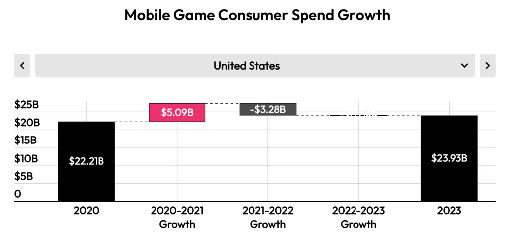 Data.ai’s 2024 State of Mobile revealed that U.S. gaming spending grew 8% from 2020 to 2023 despite a rocky road. This was a relief after the headwinds of ATT and the post-COVID freefall.