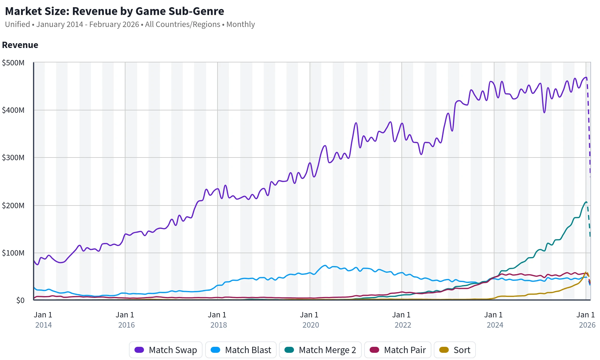 I pin similar cognitive resource requirements to the struggle to have the "other" puzzle category emerge. Tile/Match 3D looks like they'll be one or two category winners, but on a casual GDP scale, it looks irrelevant compared to Merger's real potential to overtake match revenue and become a plurality by the end of 26'.