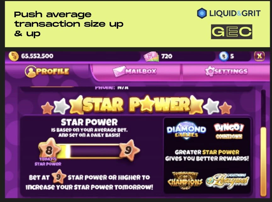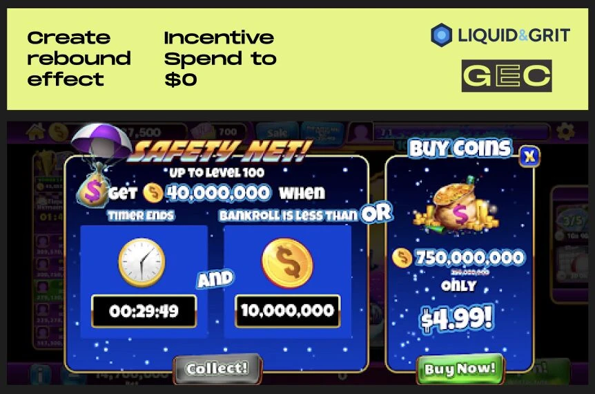 Social casino already has two cleaner spend-velocity mechanics worth borrowing. Safety Net gives the player a rebound grant after hitting zero, then re-enables that claim on a cooldown. That makes full balance drains part of the rhythm instead of the end of the session. Star Power rewards players for raising average transaction size, which turns higher spend velocity into a small progression track with built-in crescendo moments. Merge and match-3 should probably borrow more from that playbook than they currently do.