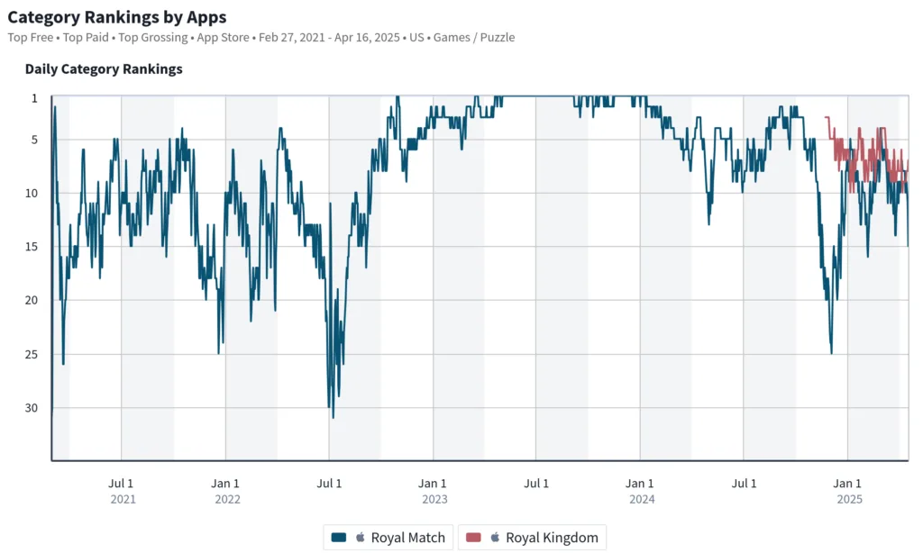 Dream Games is opening the UA floodgates for Royal Kingdom, deploying significant marketing spend and celebrity-driven creative. This move reflects a familiar pattern: Royal Match itself required about two years to scale effectively. But now, the Dream Games UA team faces a new paradigm: how to optimally scale spending across two titles and manage new franchise-level LTV dynamics.